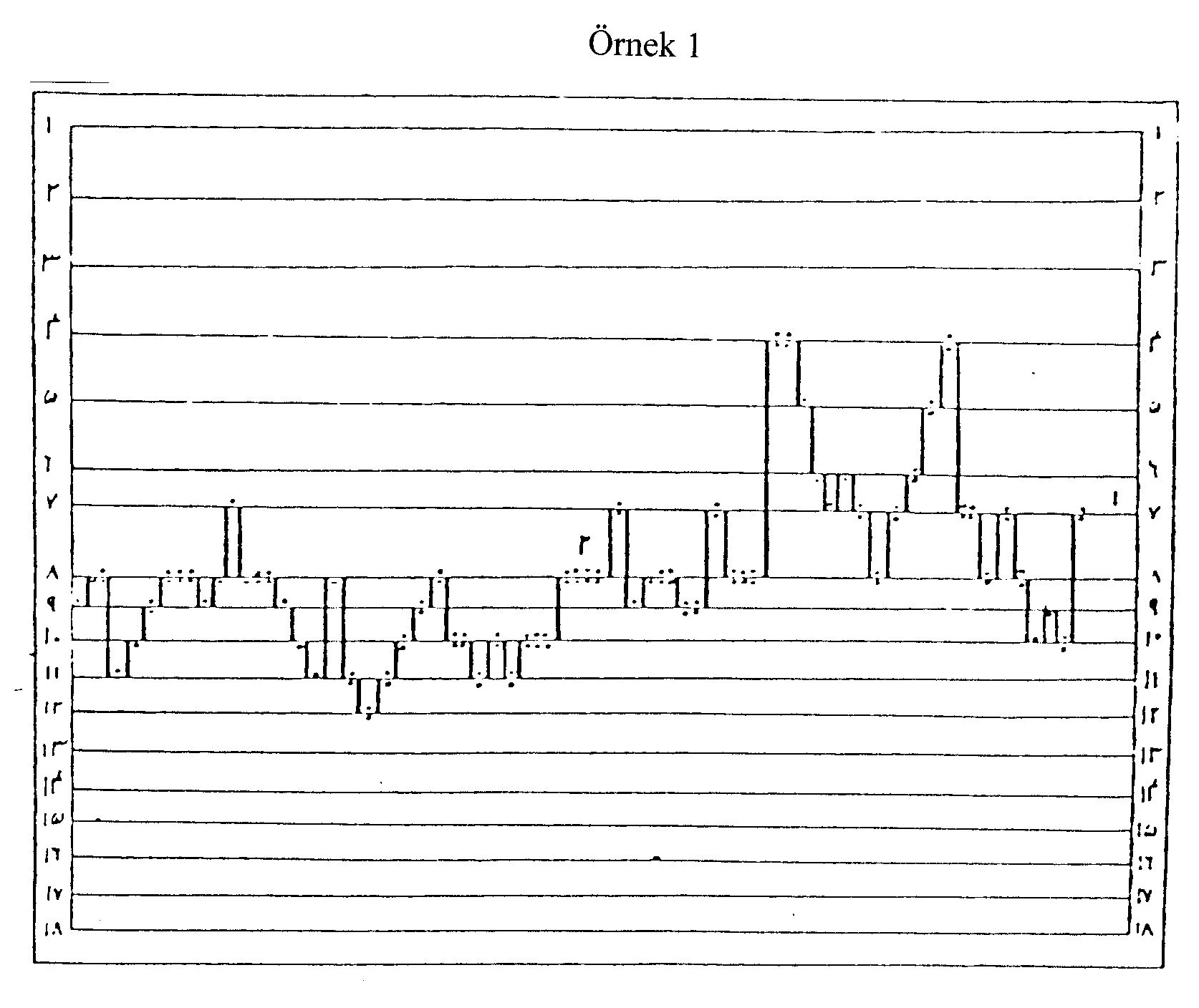 Tele vurulan her mızrab, basılan perdenin altına ve üstüne (mızrab sayısı birden fazla ise hem alta hem üste) konulan noktalarla gösteriliyor. Bunların süresini bugünkü nota yazımızda sekizliklerle ifade edebiliriz. Bir perdeden öbürüne geçildiğinde, bu iki perdenin arası, dikey bir çizgiyle birleştiriliyor. Gidilen perdeye vurulan mızrablar, yeniden, noktalarla işaretleniyor; böylece, bir yandan, hangi perdeye basıldığını görüyoruz; öte yandan da, o perdeye vurulacak mızrab sayısını öğreniyoruz. Bunlara göre, notayı çözmeyi başarıyoruz. Bu çözüm sırasında, usûlün yapısını bilmek büyük önem taşıyor.