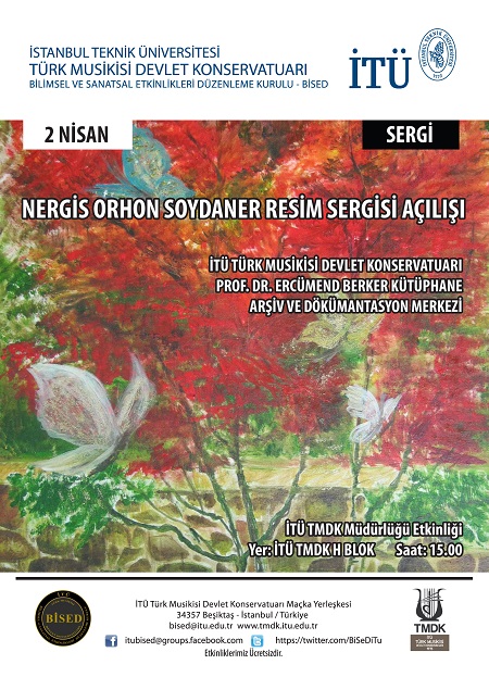 İTÜ TMDK Ercümend Berker Kütüphane, Arşiv ve Dokümantasyon Merkezi 02 Nisan Çarşamba günü Cüneyd Orhon arşivi açılışıyla birlikte, aynı mekanda bir başka etkinlik daha var. Cüneyd Orhon’un kızı Nergis Orhon Soydaner’in resim sergisi…